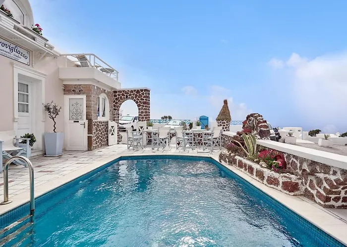 Bénéficiant d'une piscine sur une terrasse ensoleillée, Merovigliosso est à moins de 6 km le Musée du vin Koutsoyannopoulos. L'aéroport de Santorin est situé à 10 km, et la gare routière l'Emerovigli est à 500 mètres.